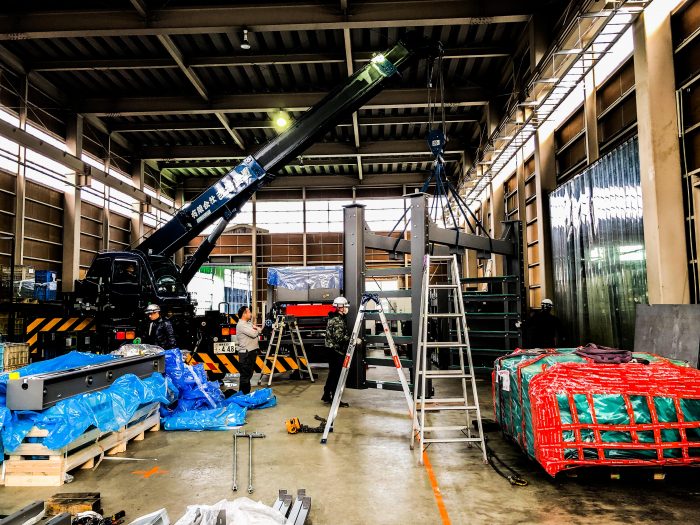 多関節ロボットKUKAに続き、今度はスイスのバイストロニック社から6kのファイバーレーザー切断加工機がやってまいりました。