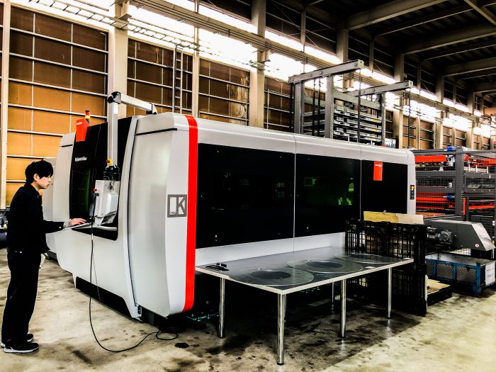 従来は金型が無いと加工を行えなかった二次元のブランキング加工は今後全てこちらの機械で行いますので、金型レスが進み、更なる短納期対応が可能になります。