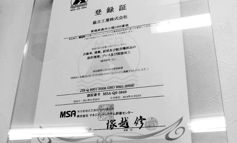 この度ISO9001:2008の認証を取得しました。