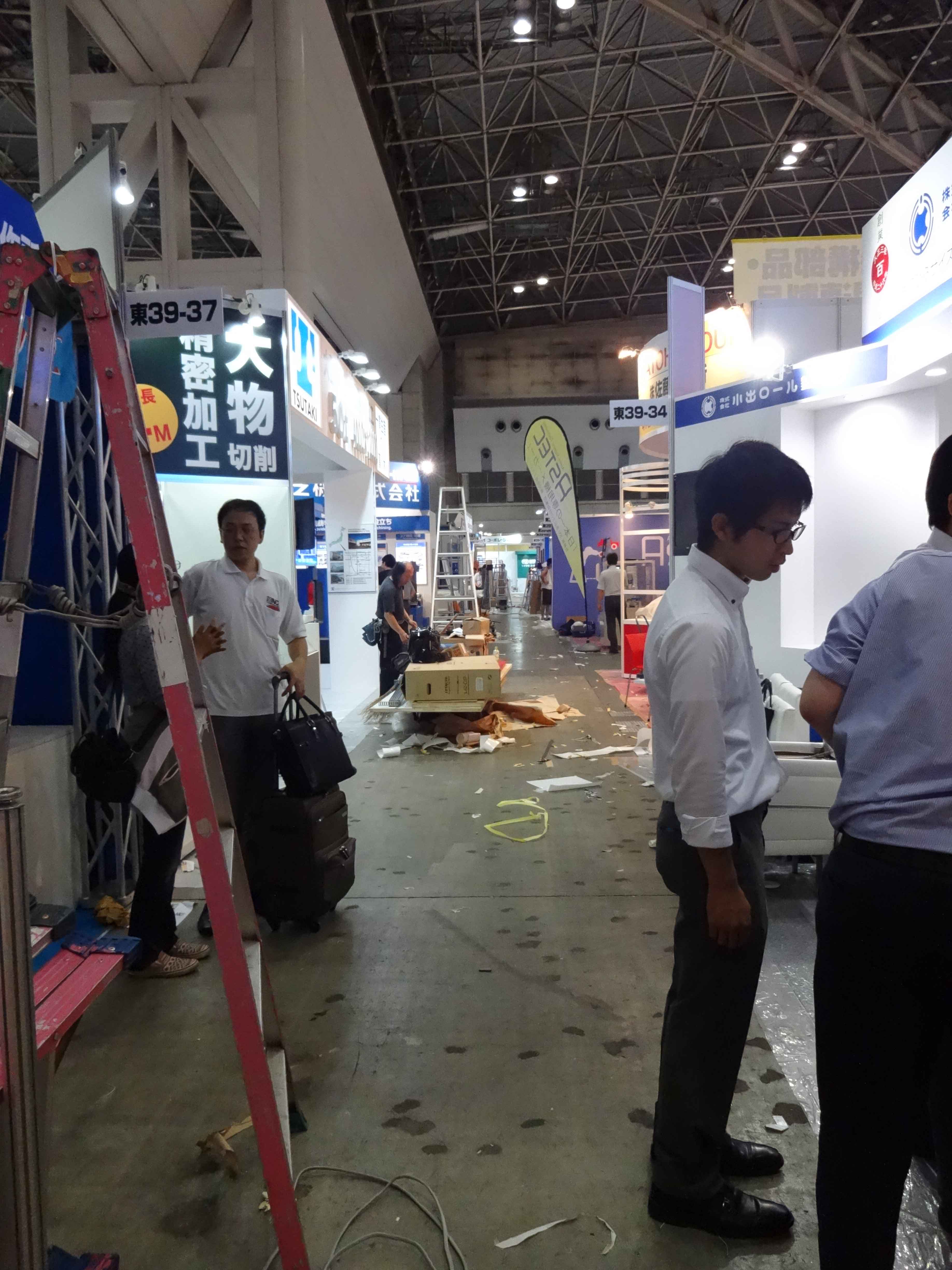 空調もきいていない超巨大ホールの中で数千社もの企業が自社のブースの準備を進めるのですから。